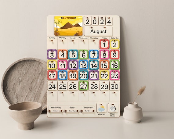 Perpetual Calendar, Kids Calendar Montessori, Monthly Calendar